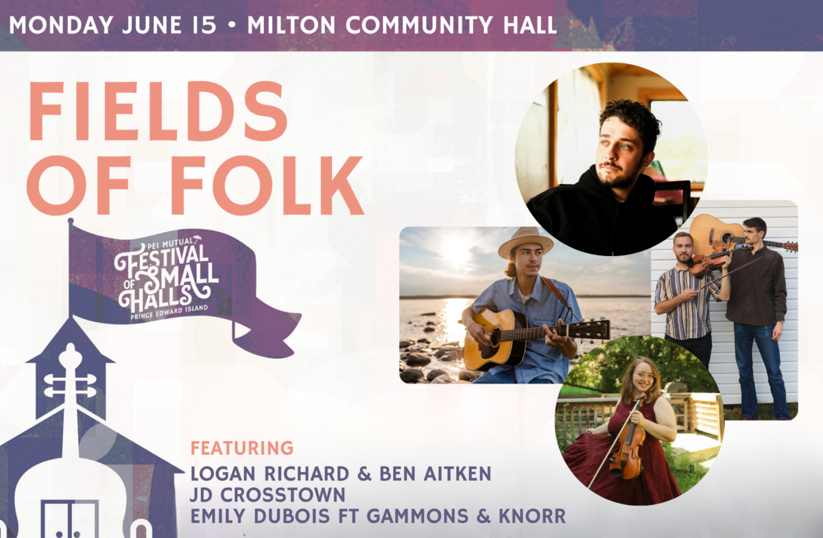 Step into a night of heartfelt melodies at “Fields of Folk,” Featuring PEI’s own Logan Richard, Ontario’s JD Crosstown, and Saskatchewan’s Emily Dubois (with Gammons and Knorr). It’s a cross-Canadian celebration of folk music!