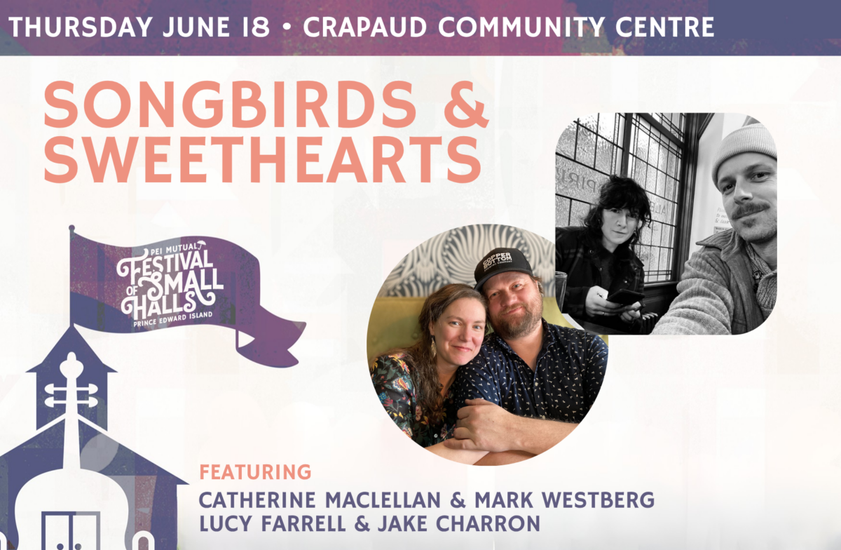 Prince County songsters Catherine MacLellan and Mark Westberg are joined by Queen’s County sweethearts Lucy Farrell and Jake Charron for Sweethearts and Songbirds.