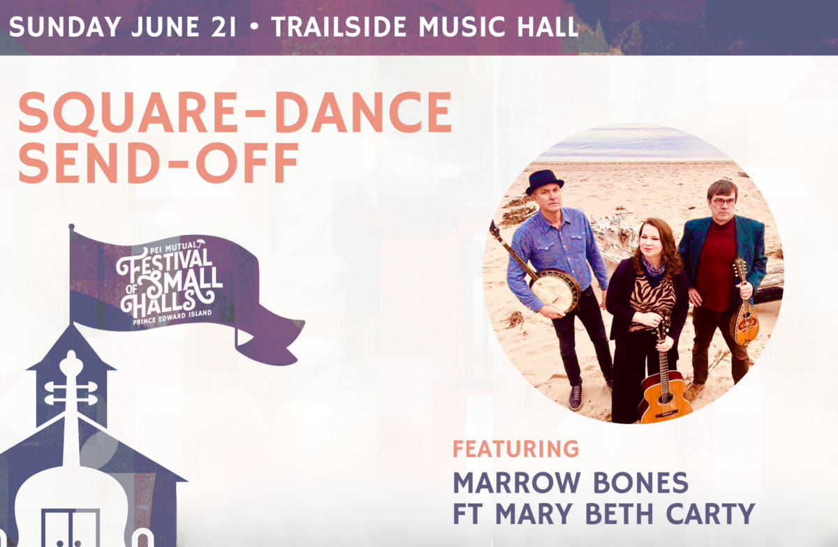 Marrow Bones and Mary Beth Carty hit the stage for a Square-Dance Send-Off. The Trailside Music Hall becomes the Trailside Dance Hall as fiddle, pipes, and whistles fill the air. Mary Beth Carty teaches and calls the dances. Everyone smiles with delight.